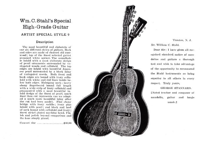 Washburn Made This model was replaced by the Larson Bros. top-of-the-line with Tree of Life fingerboard inlay